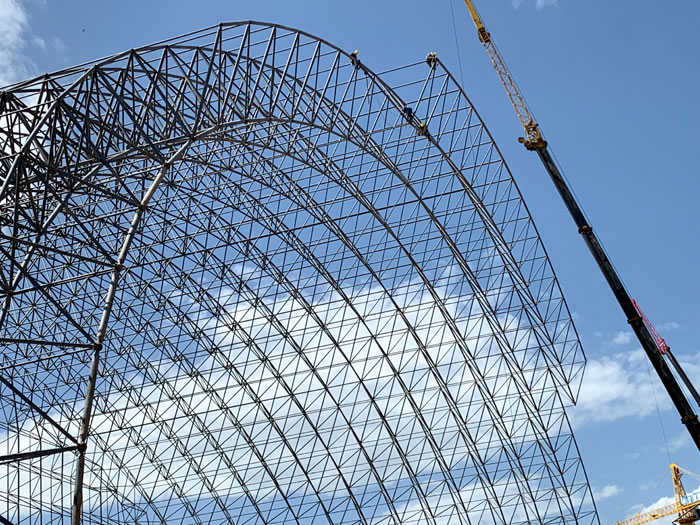 (2)网架加工前应对现场尺寸进行复测,确认无误后方可进行加工、安装;网架制作、运输、安装应遵守《空间网格结构技术规程》JGJ7-2010、《钢网架米泉螺栓球节点》JG/T 10-2009、《钢网架米泉螺栓球节点用高强度螺栓》 GB/T 16939-2016、《米泉钢结构米泉工程米泉施工规范》 GB50755-2012、《米泉钢结构米泉工程施工质量验收标准》 GB50205-2020。